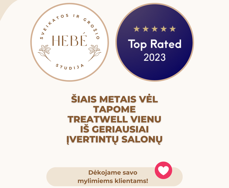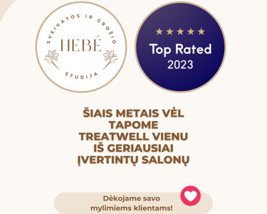 Treatwell platformoje antrus metus iš eilės tapome vienas iš klientų geriausiai įvertintų sveikatos ir grožio salonų 2023 metais.